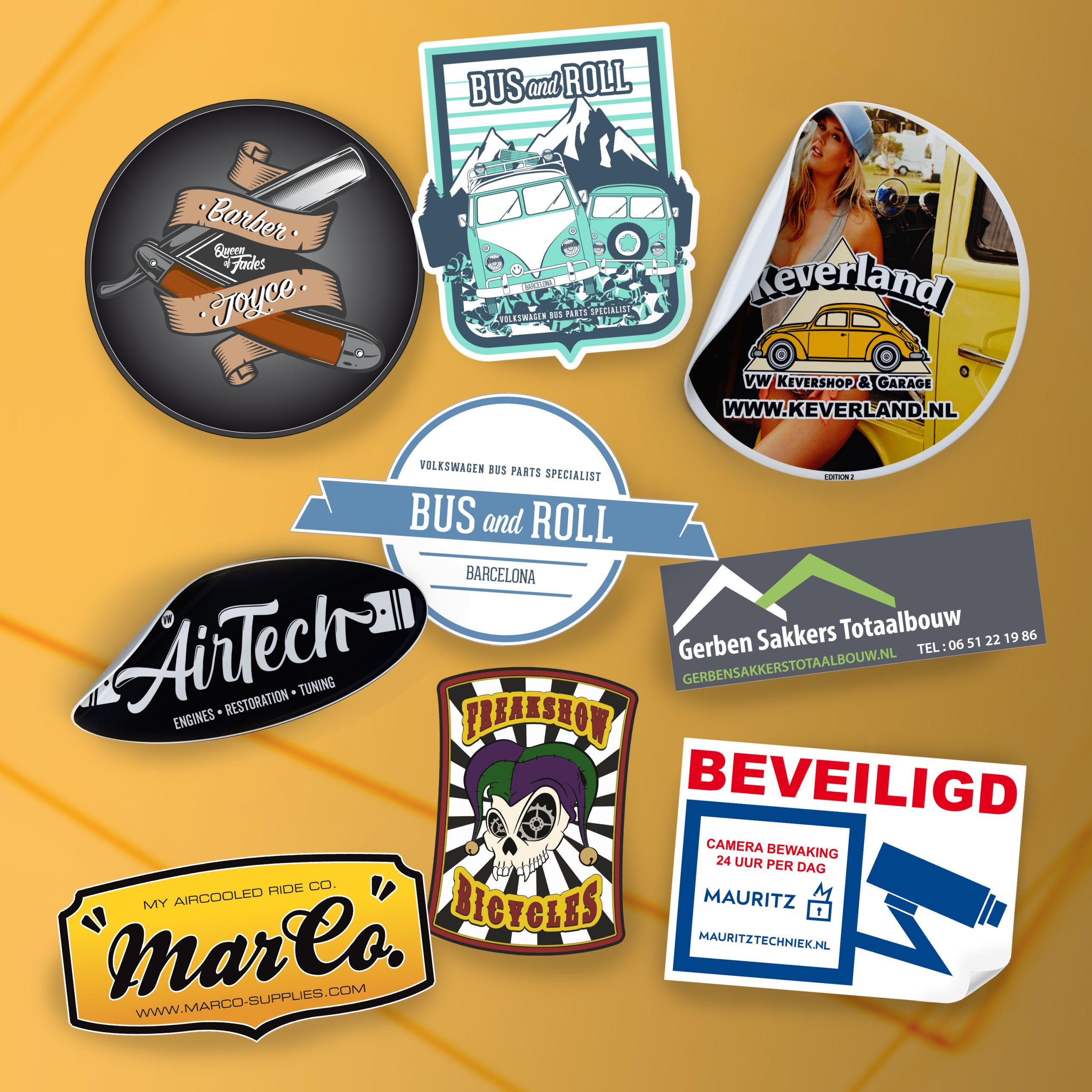 • Stickers: van ontwerp tot productie op groot en klein formaat, per stuk, op rol en leverbaar in elke gewenste oplage.