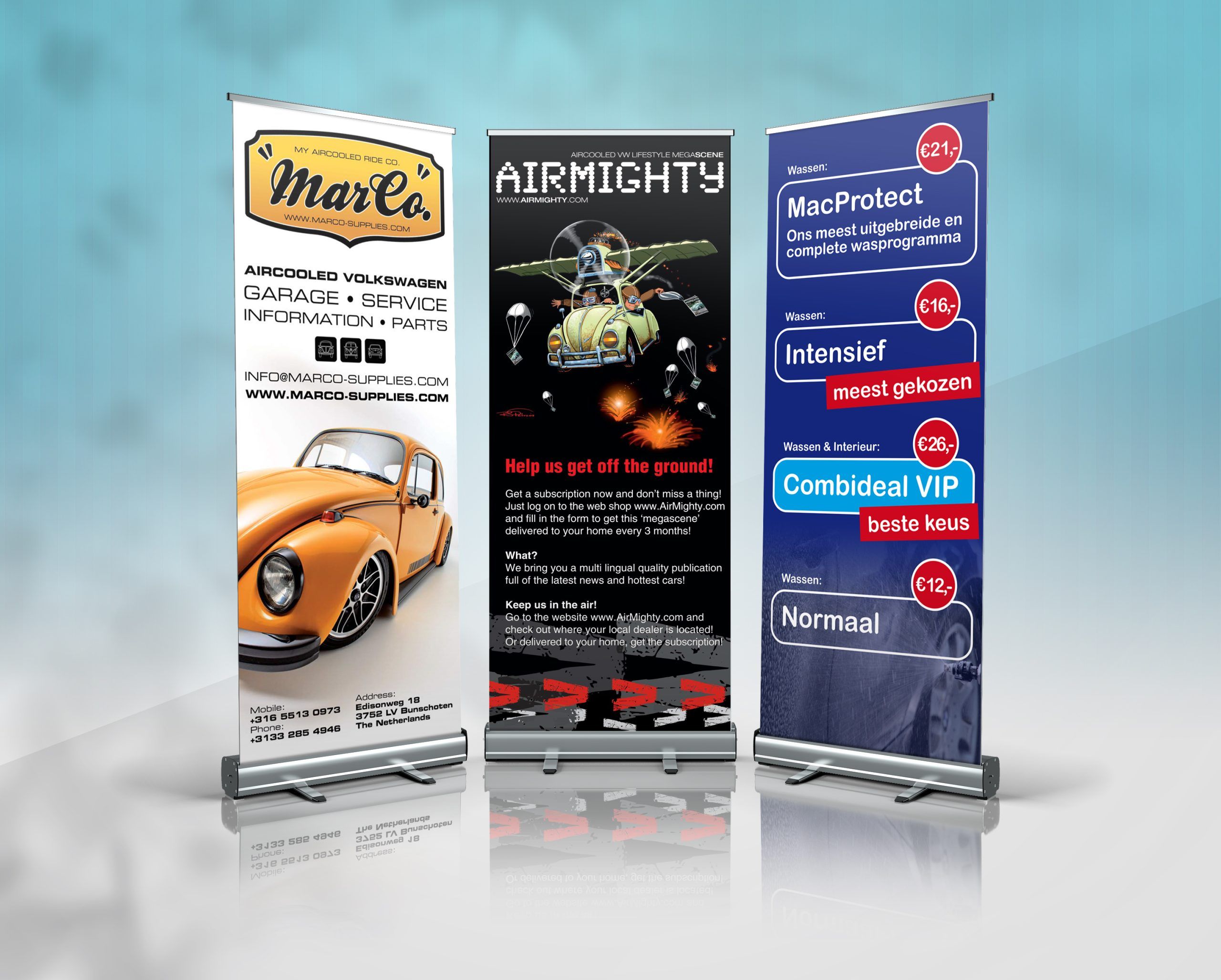 With AirMighty Design & Print, we combine our passion for graphic design, print and of course our hobby air-cooled Volkswagens with visual power. Let your brand, event, or message stand out – we’ll make sure it gets seen and remembered.